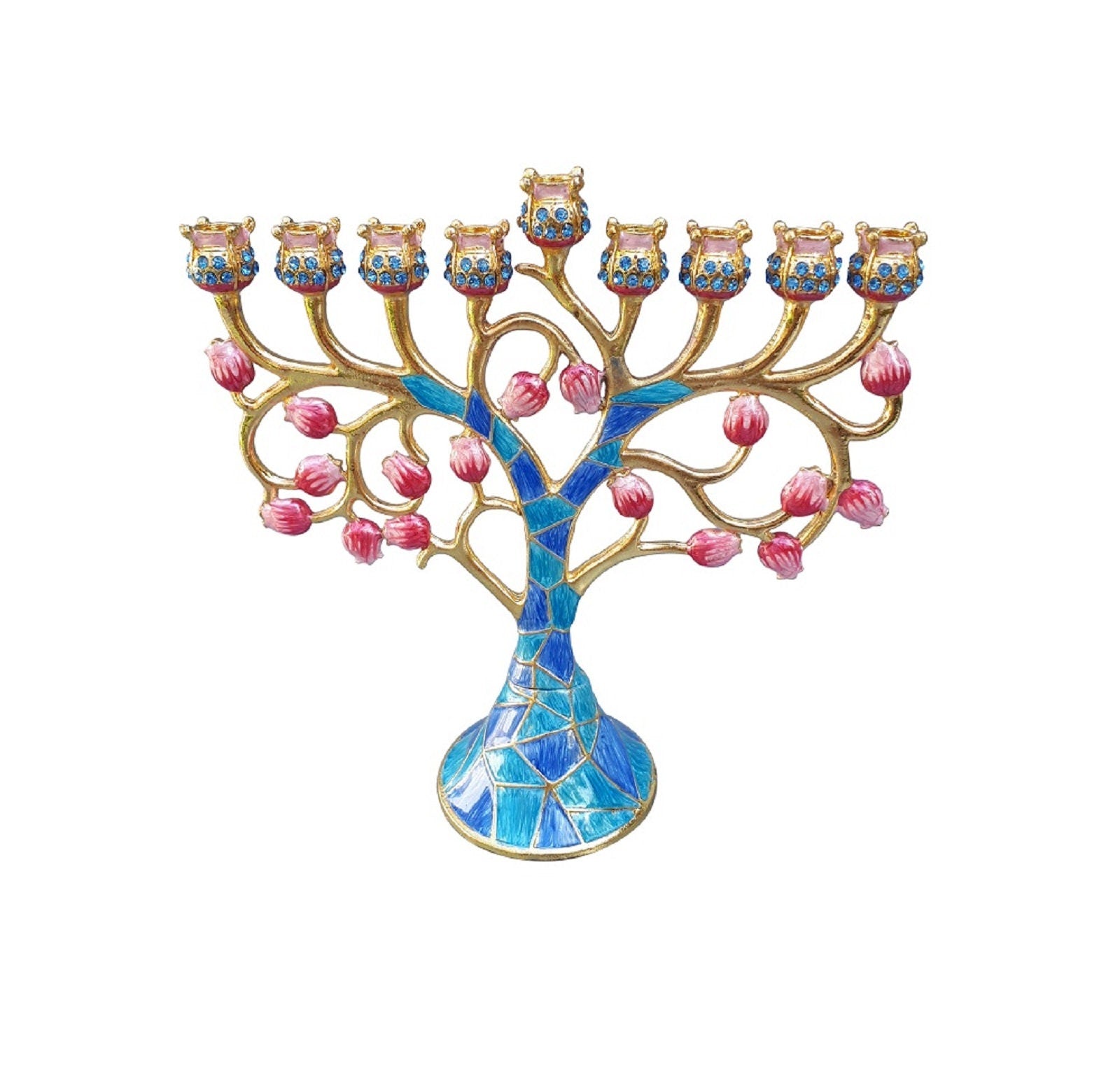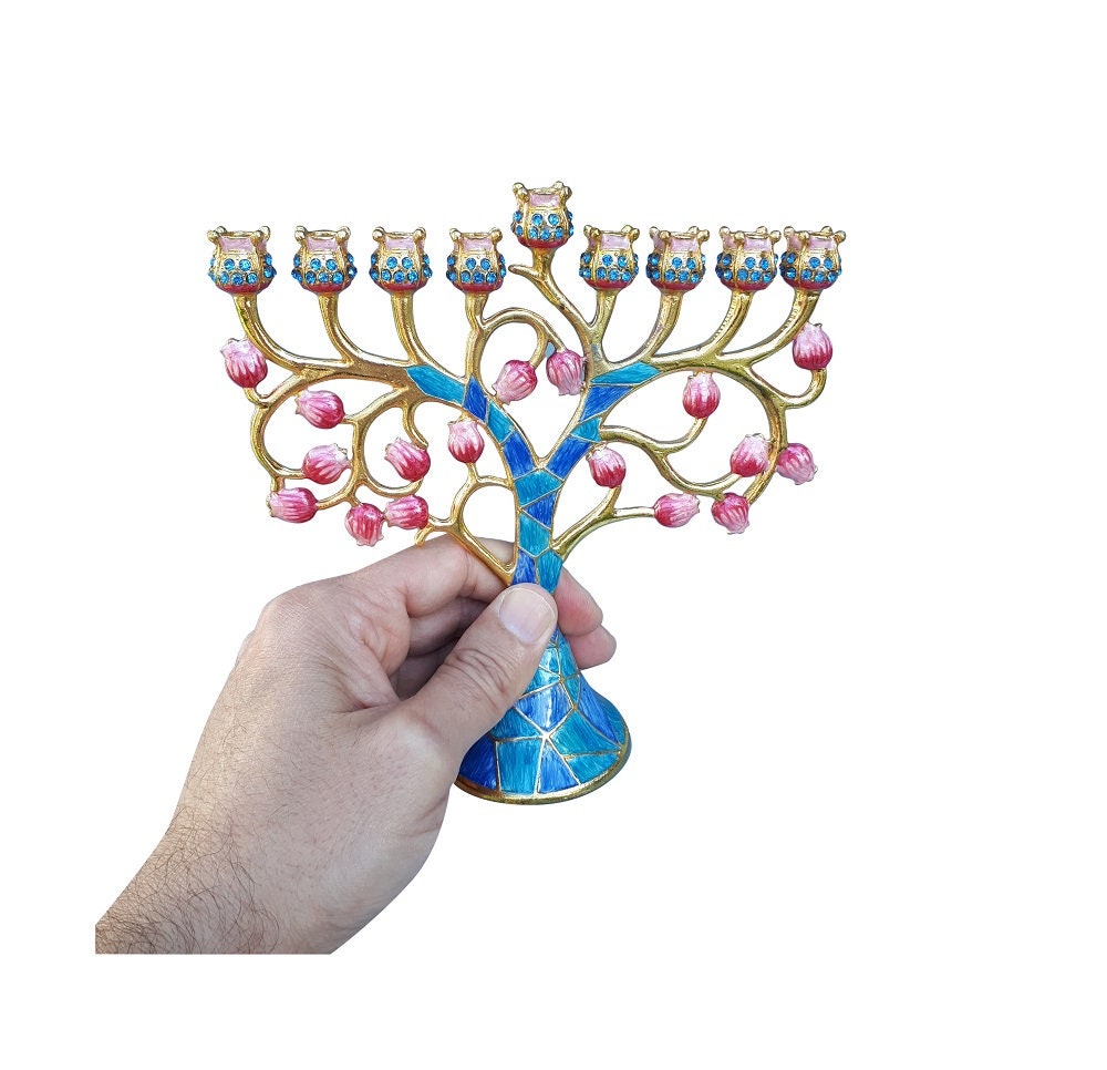 9 Brach Menorah - Hanukkah Chanukkah Menorah 6.3 Inch Height Decorated With Enamel
