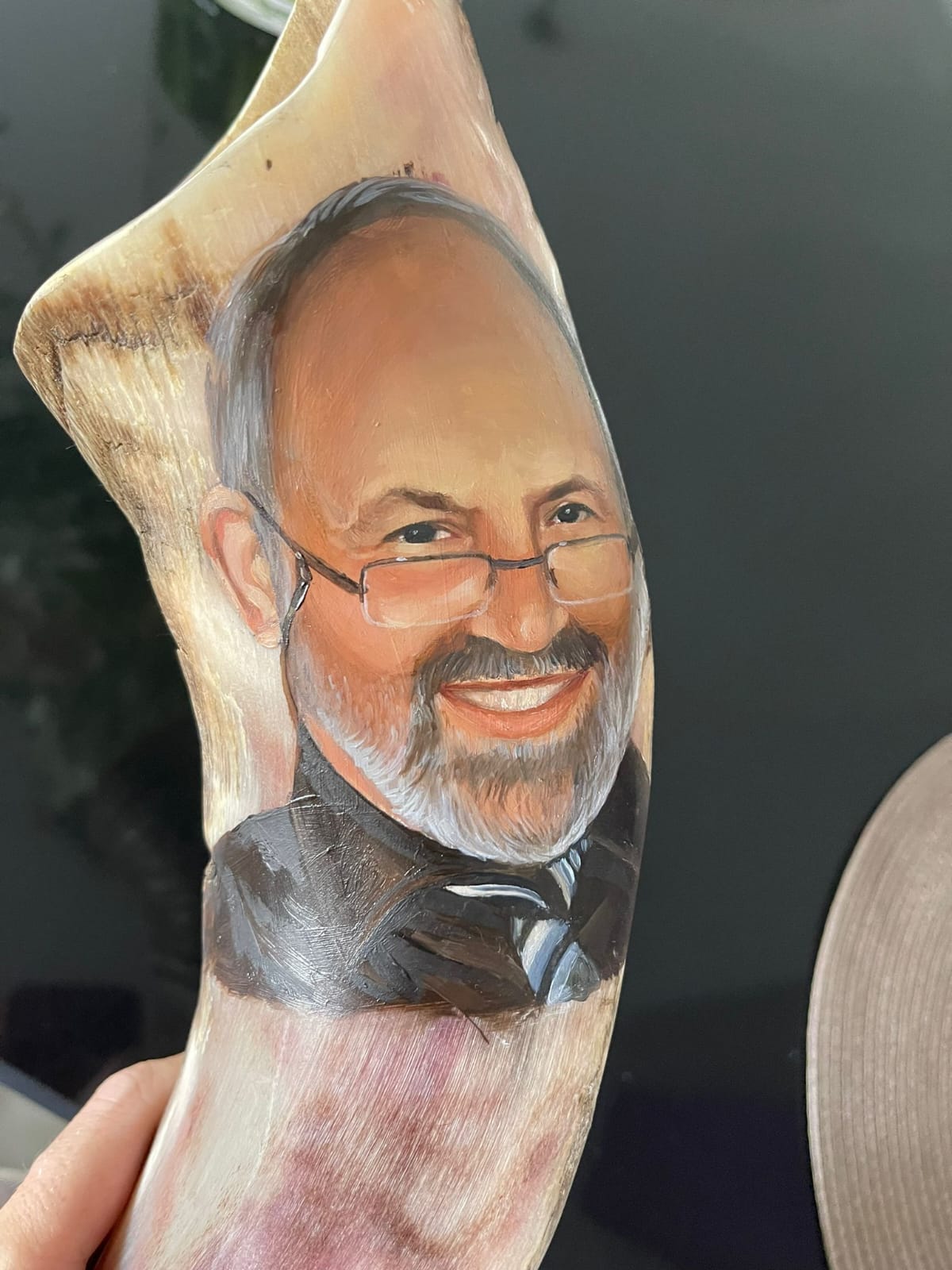 The Portrait will be painted on 32 inch shofar with perfect sound and look