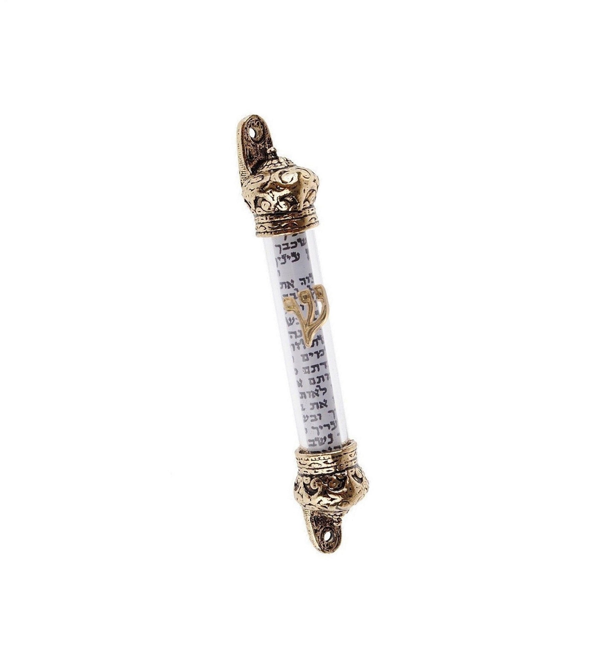 Door Mezuzah & scroll, Judaica Israel gift - Scripture Parchment Non Kosher with Crown Gold Cover