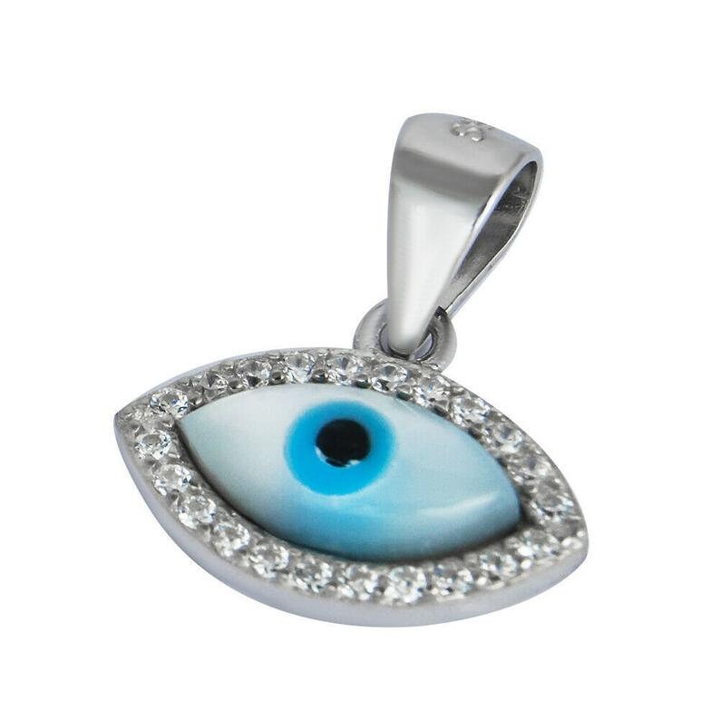 Evil Eye Kabbalah With Zircons & Mini Oval Glass Pendant Protect Charm + Chain