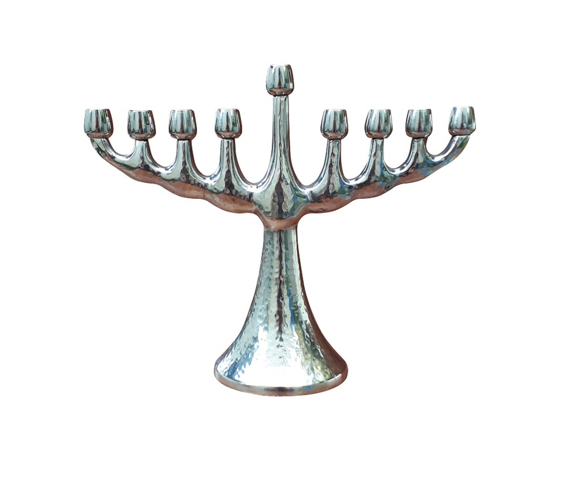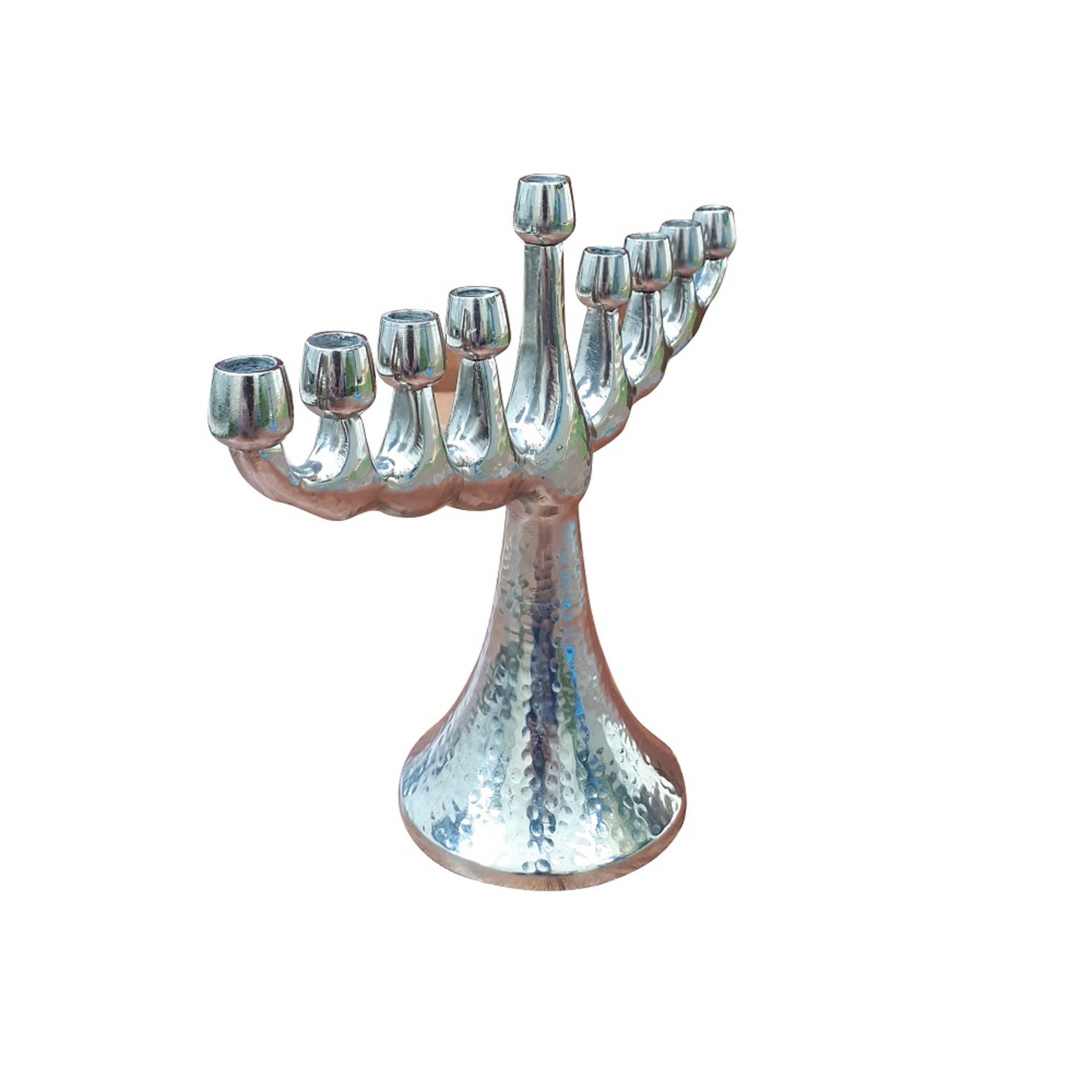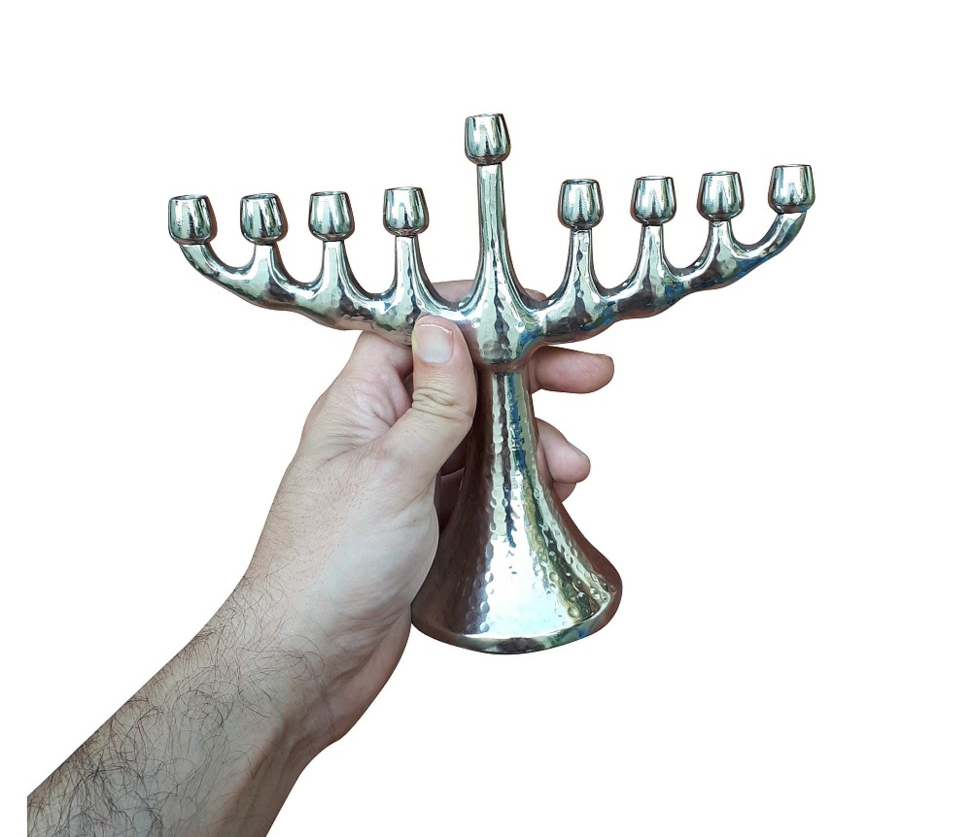 Hanukkah Menorah 7 Inch Height, Jewish Hanukkiah 9 Branch Menorah, hammered Design Hanukkiah