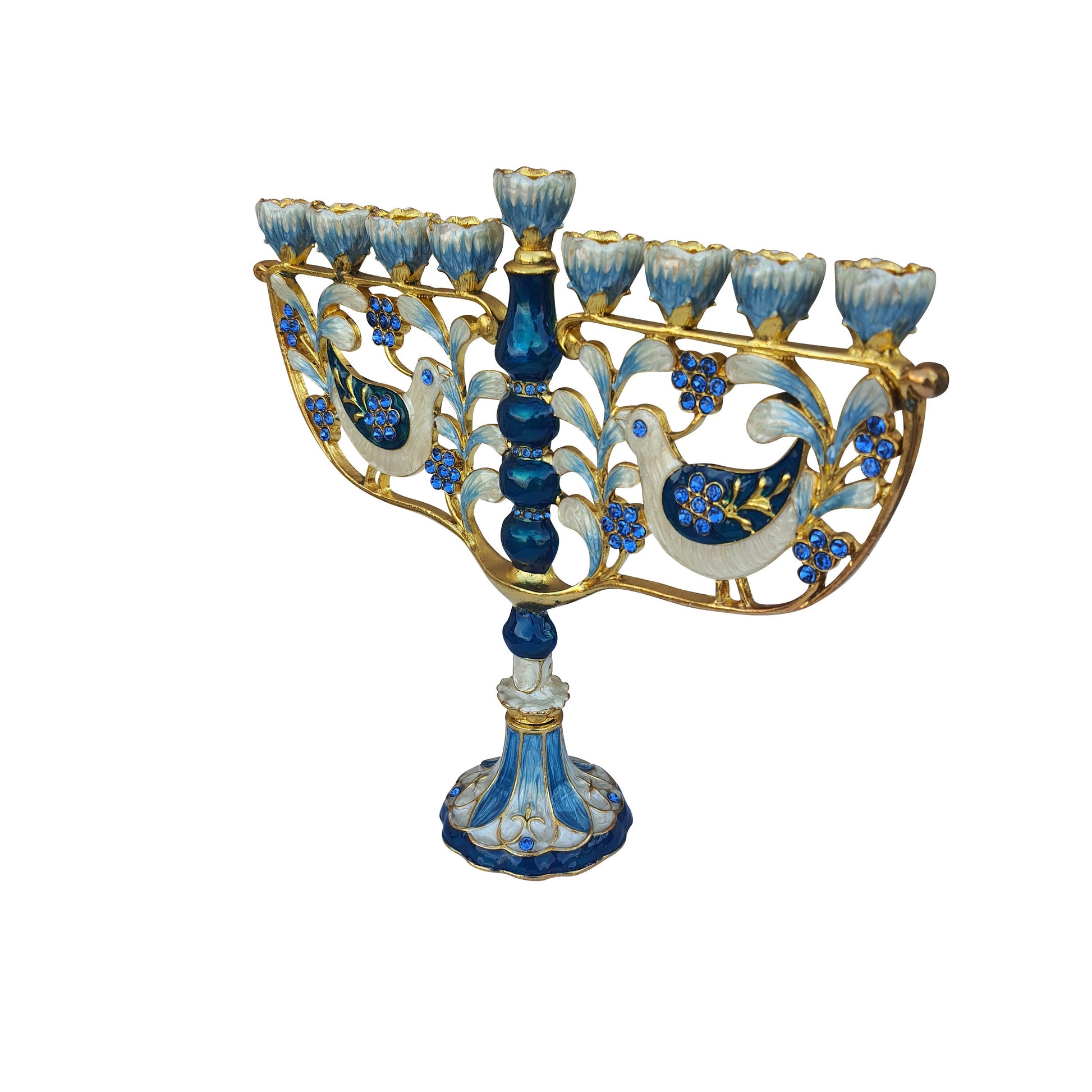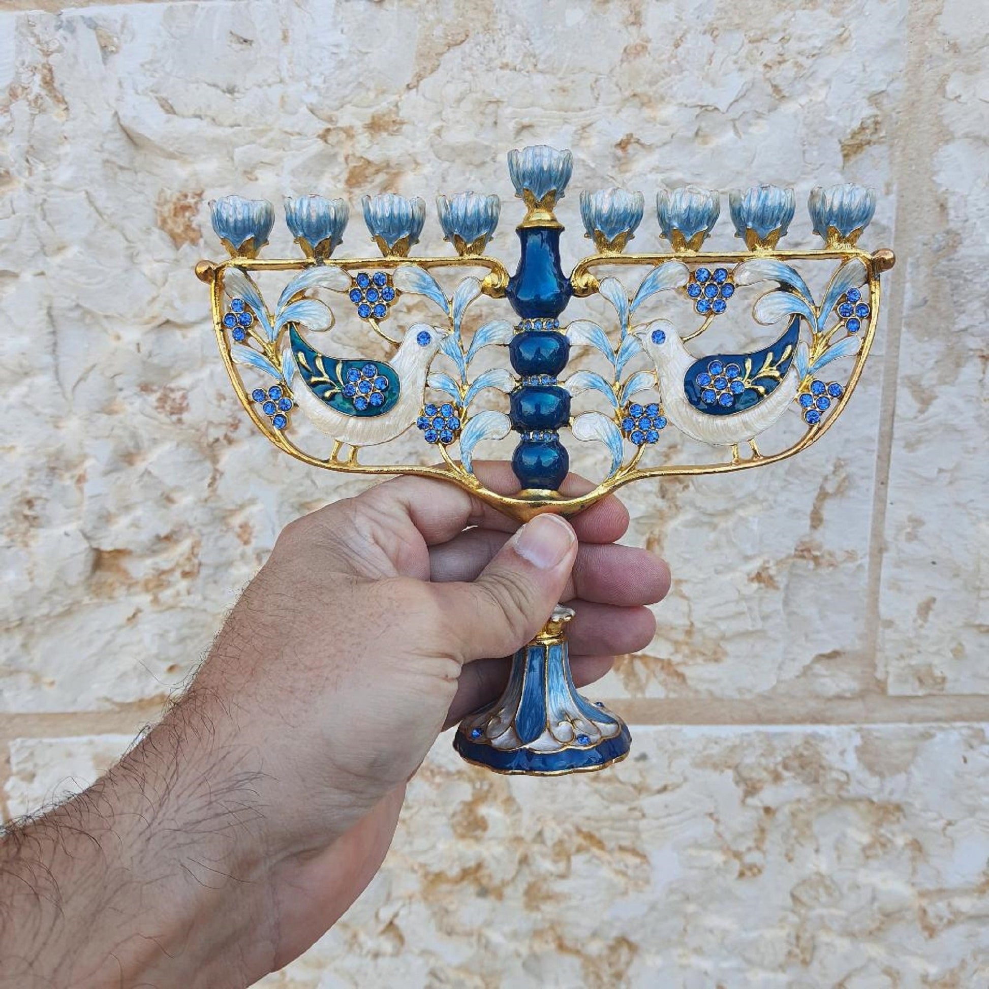 Hanukkah Menorah - Jewish Chanukkiha 6.5 Inch Height Decorated With Enamel