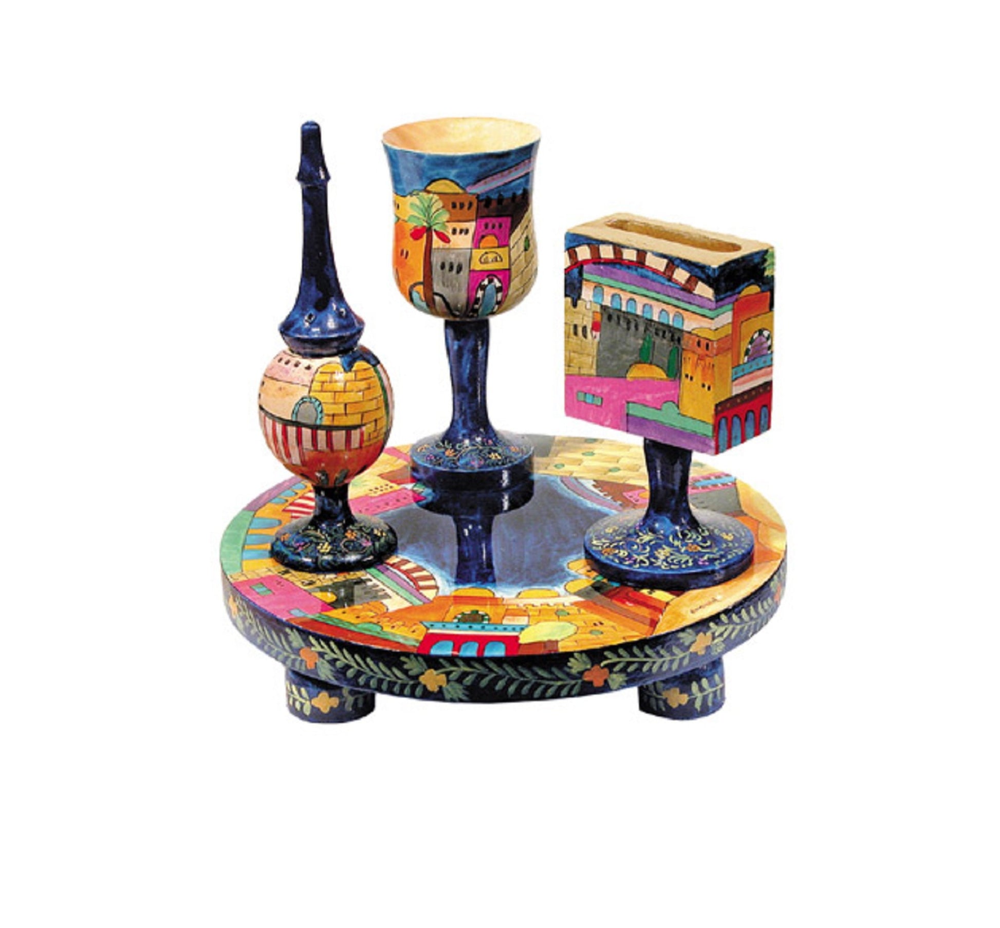Havdalah Set, Painted Wood Set , Havdallah candle Holder, Besamim Box And Wine Cup & Tray, Jerusalem Painted