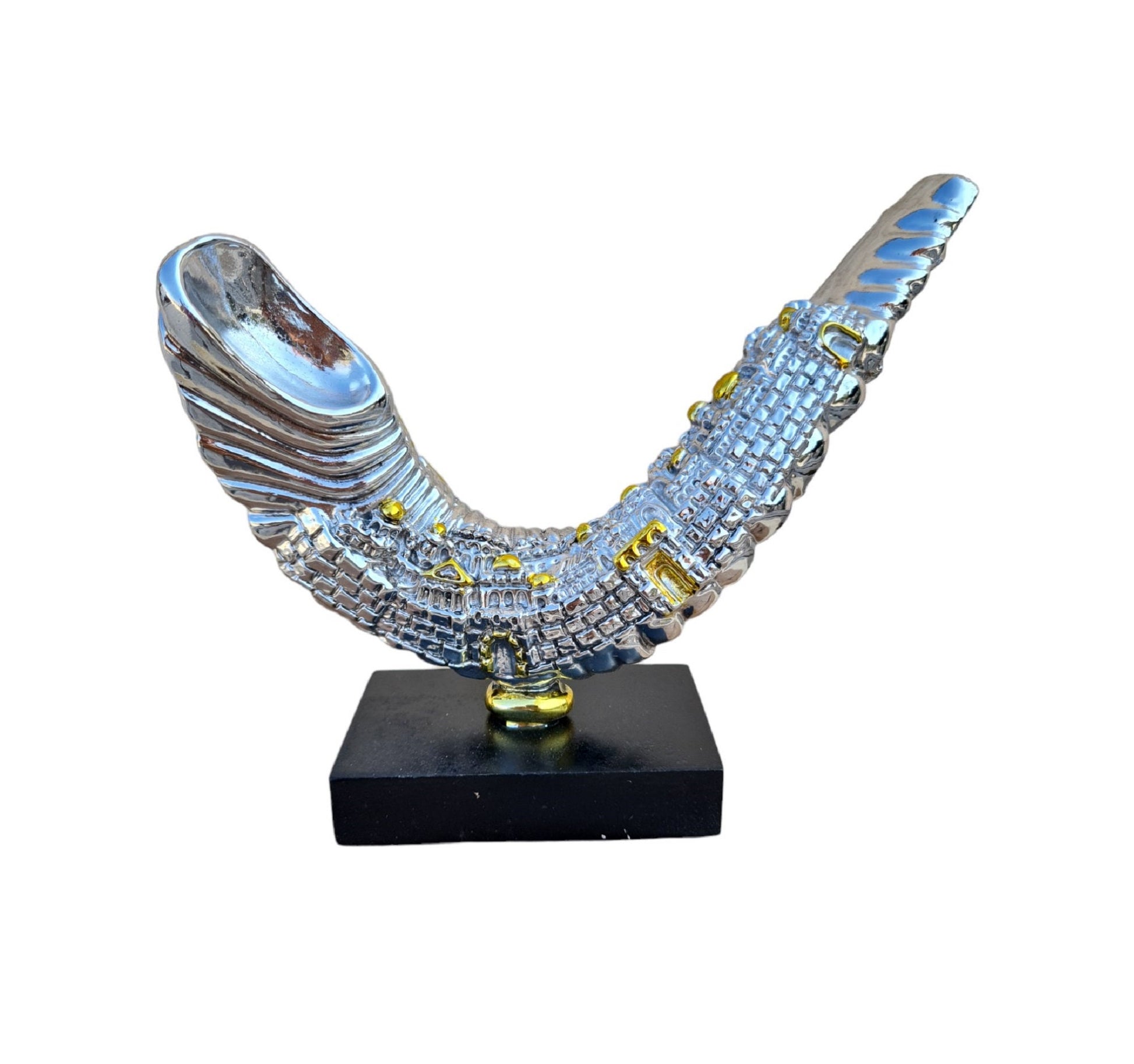 Jerusalem Silver Plated Shofar Rams Horn , Replica of Jewish Shofar Silver Plated With Jerusalem View