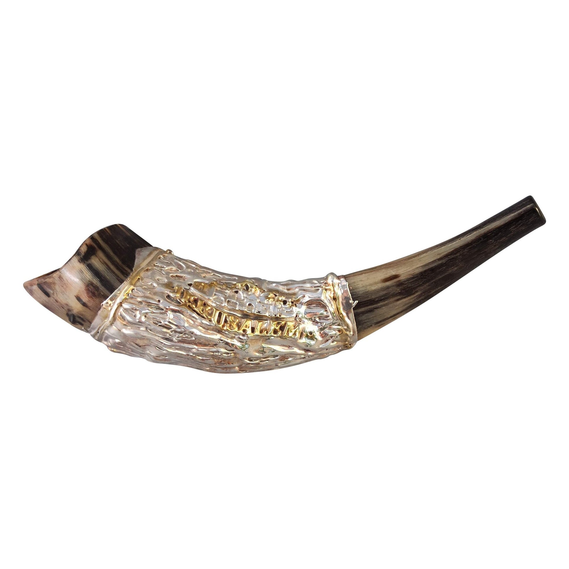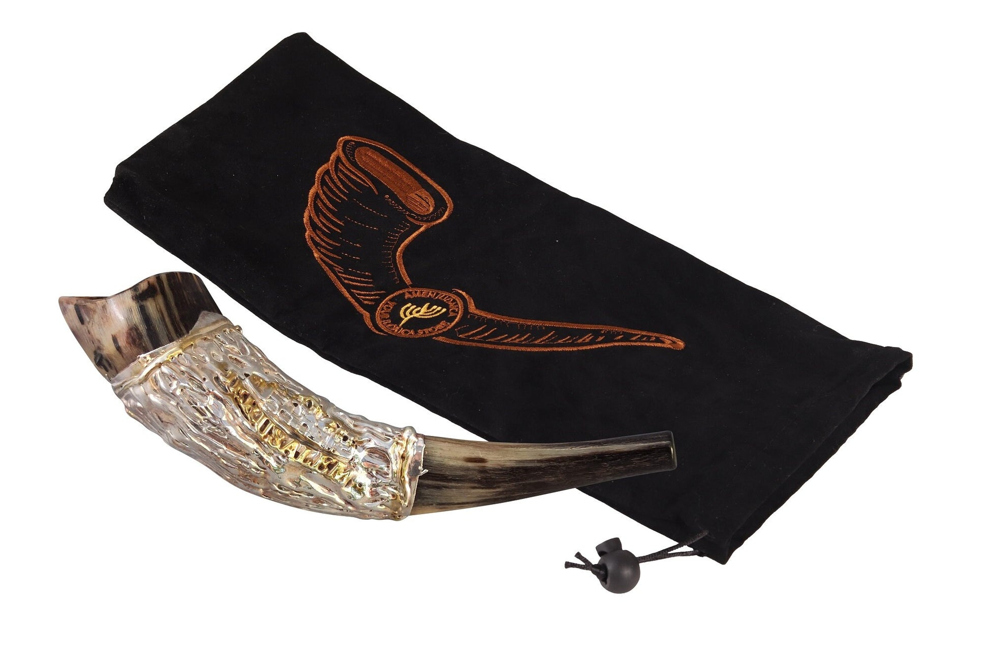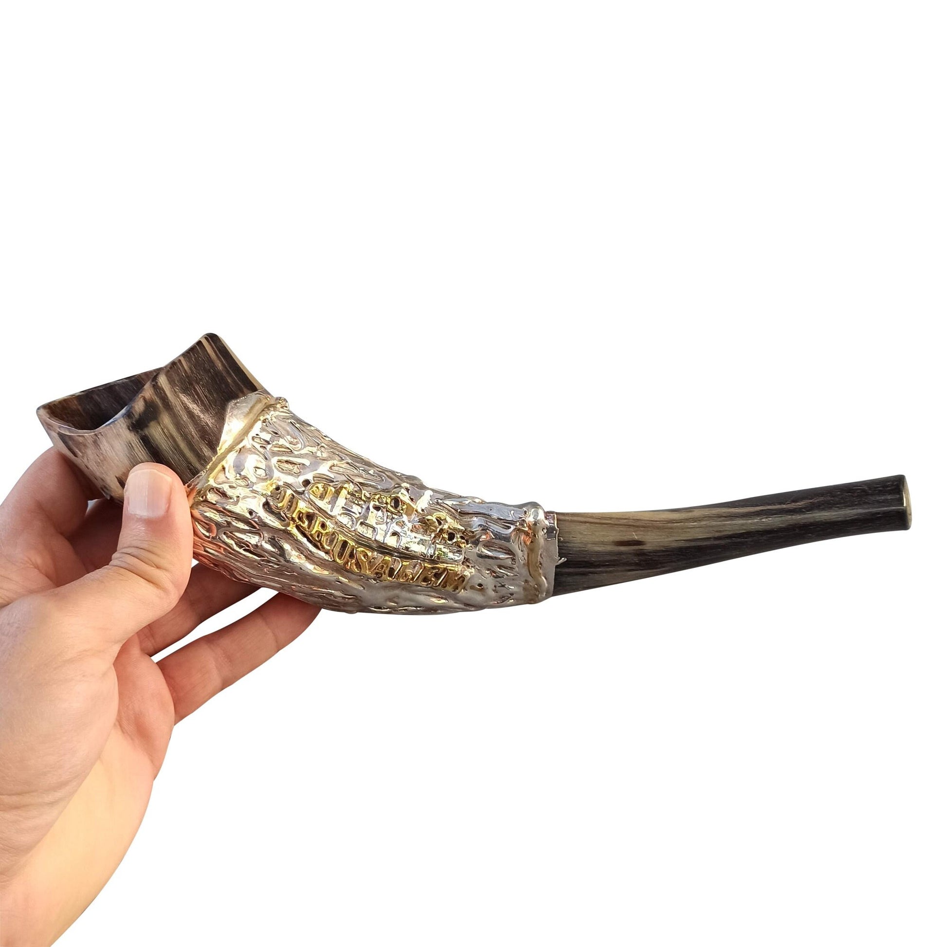 Jewish Shofar Ram Horn 10-12 Inch With Jerusalem Silver Plated And Bag