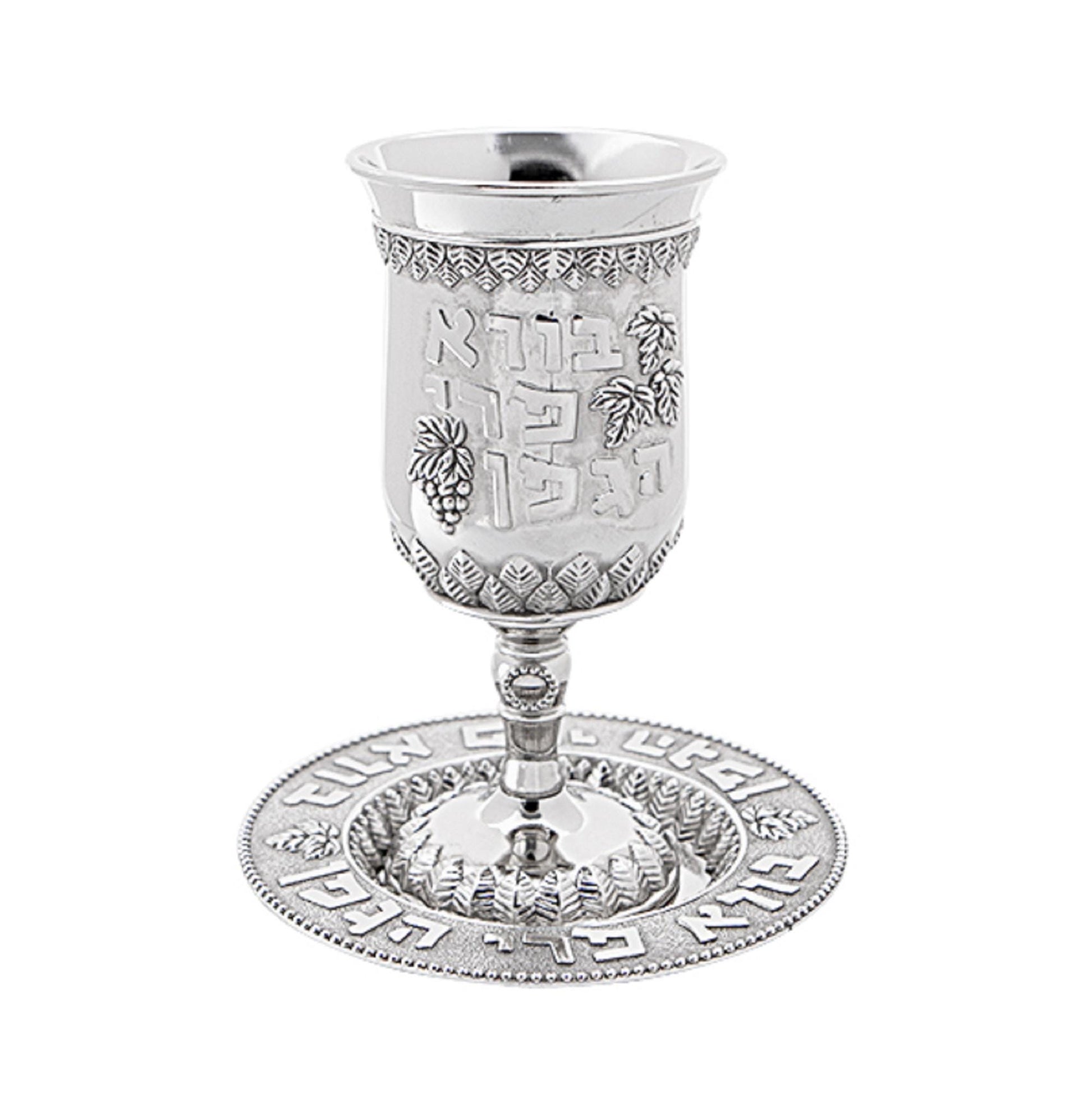 Engraved with the traditional Kiddush Hebrew blessing: