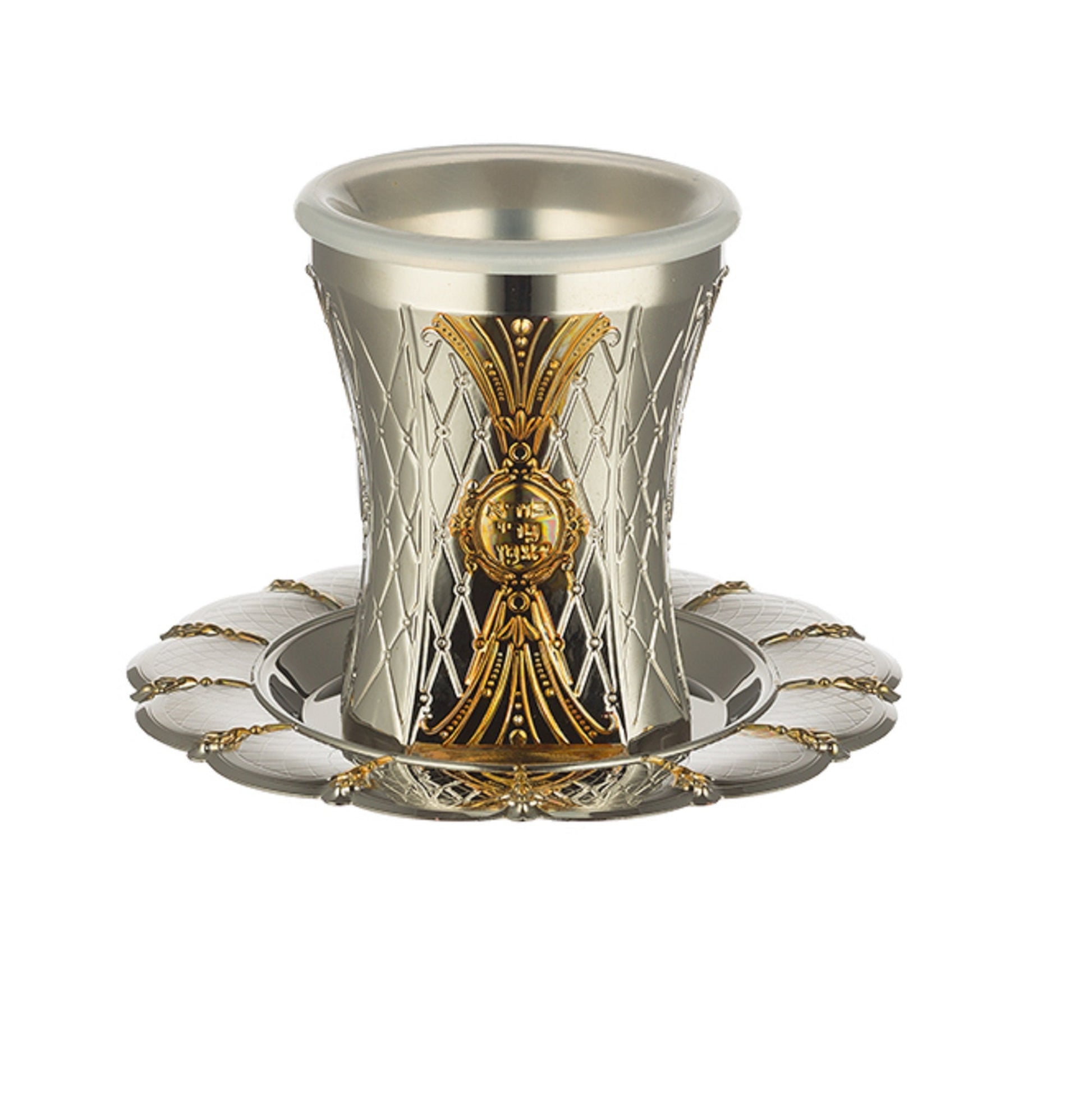 Perfect for Shabbat, holidays, or special occasions, this cup and matching plate set is a timeless addition to any Judaica collection.