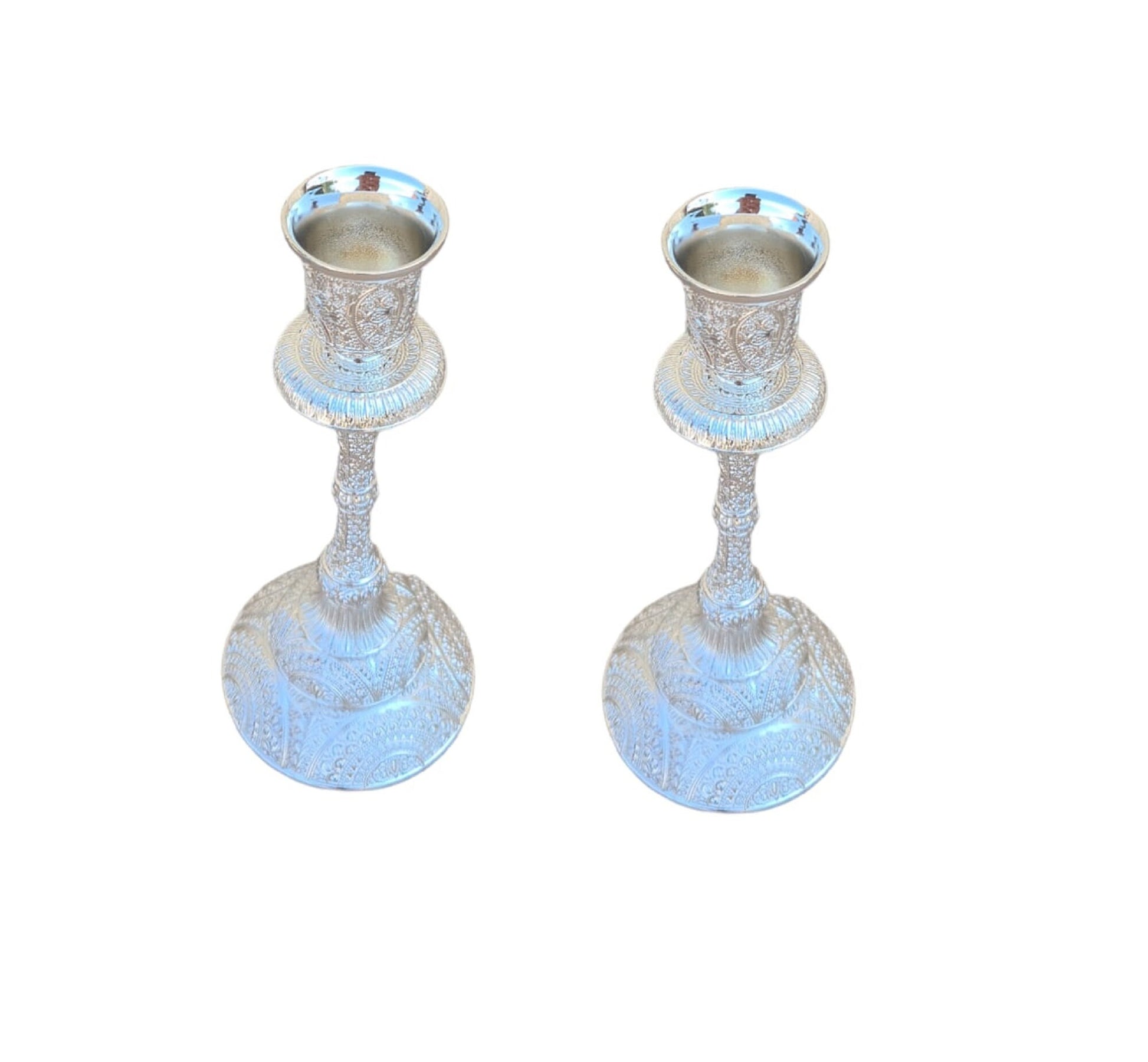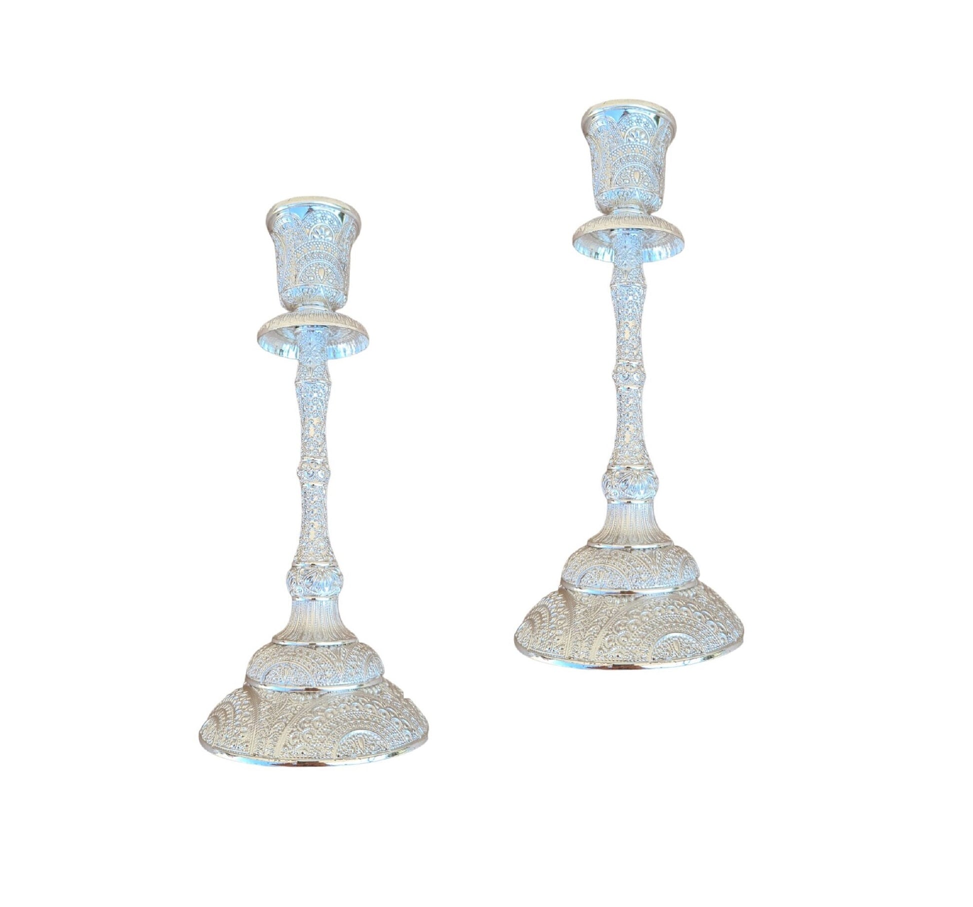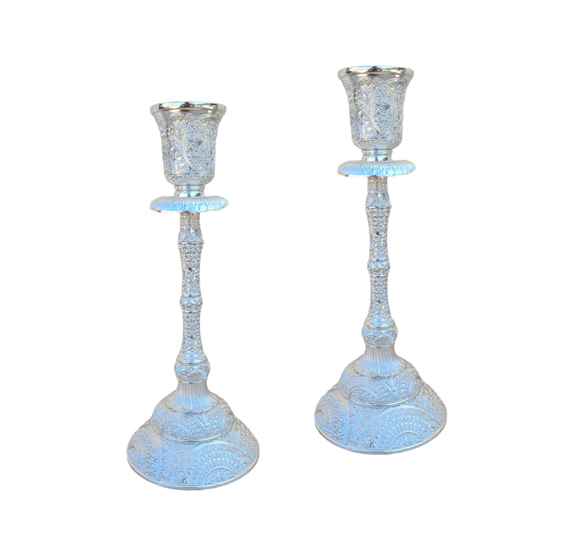 Sabbath Candlesticks Silver Plated filigree Design Pair Of Candle Holder For Shabbat Table - 7.5 Inch Height