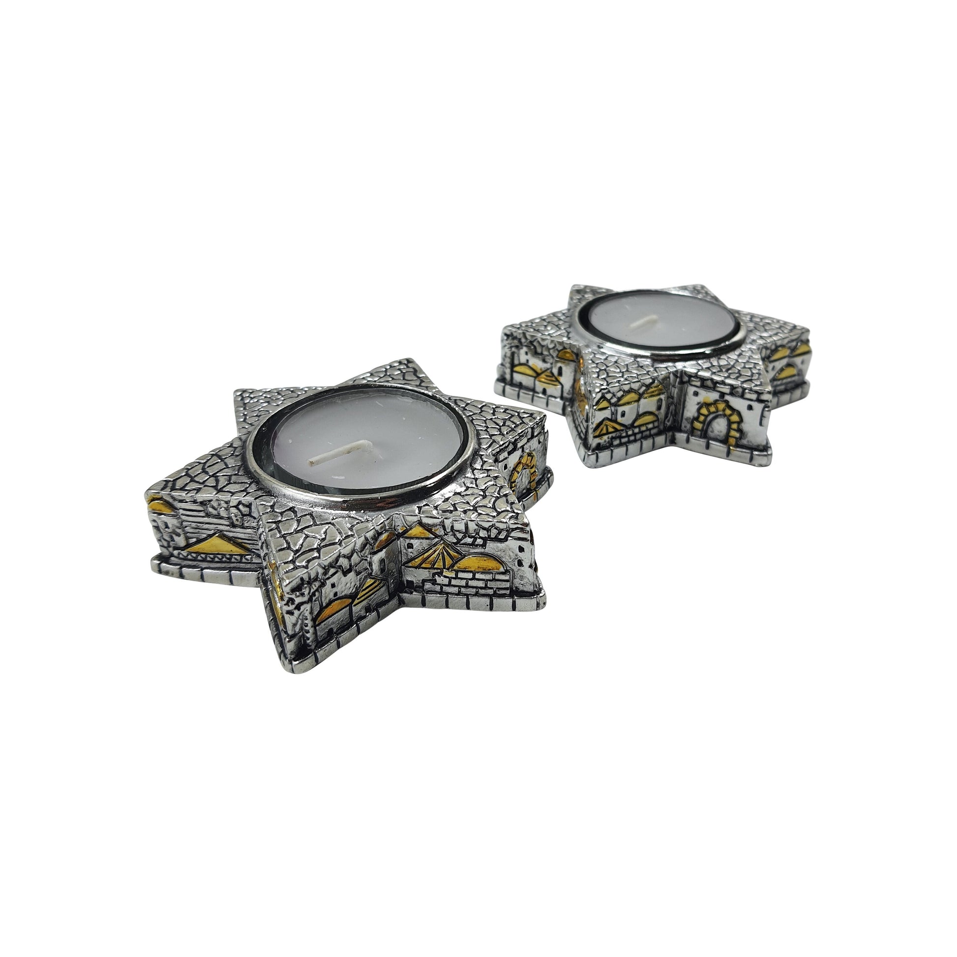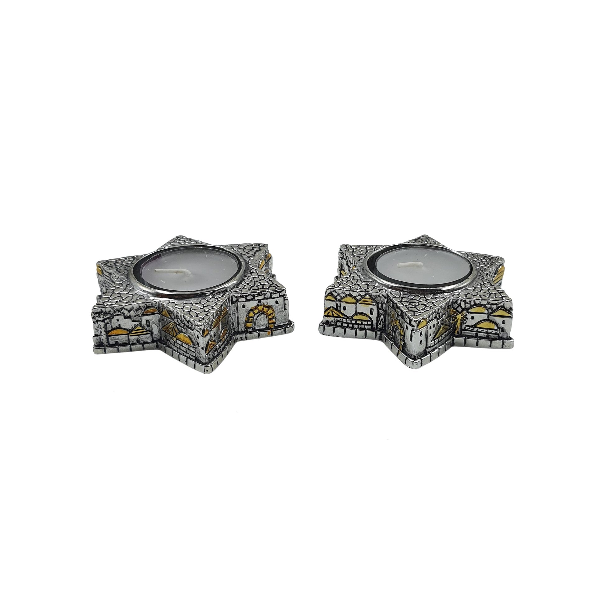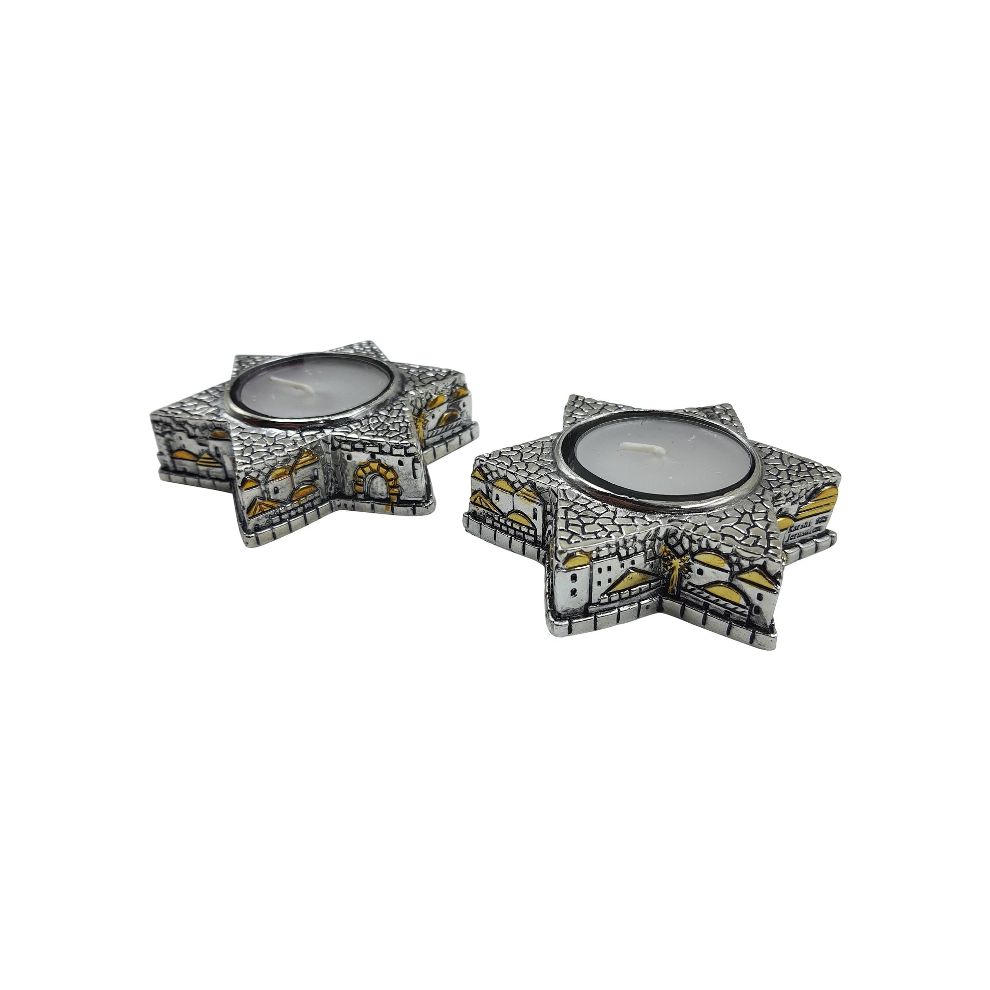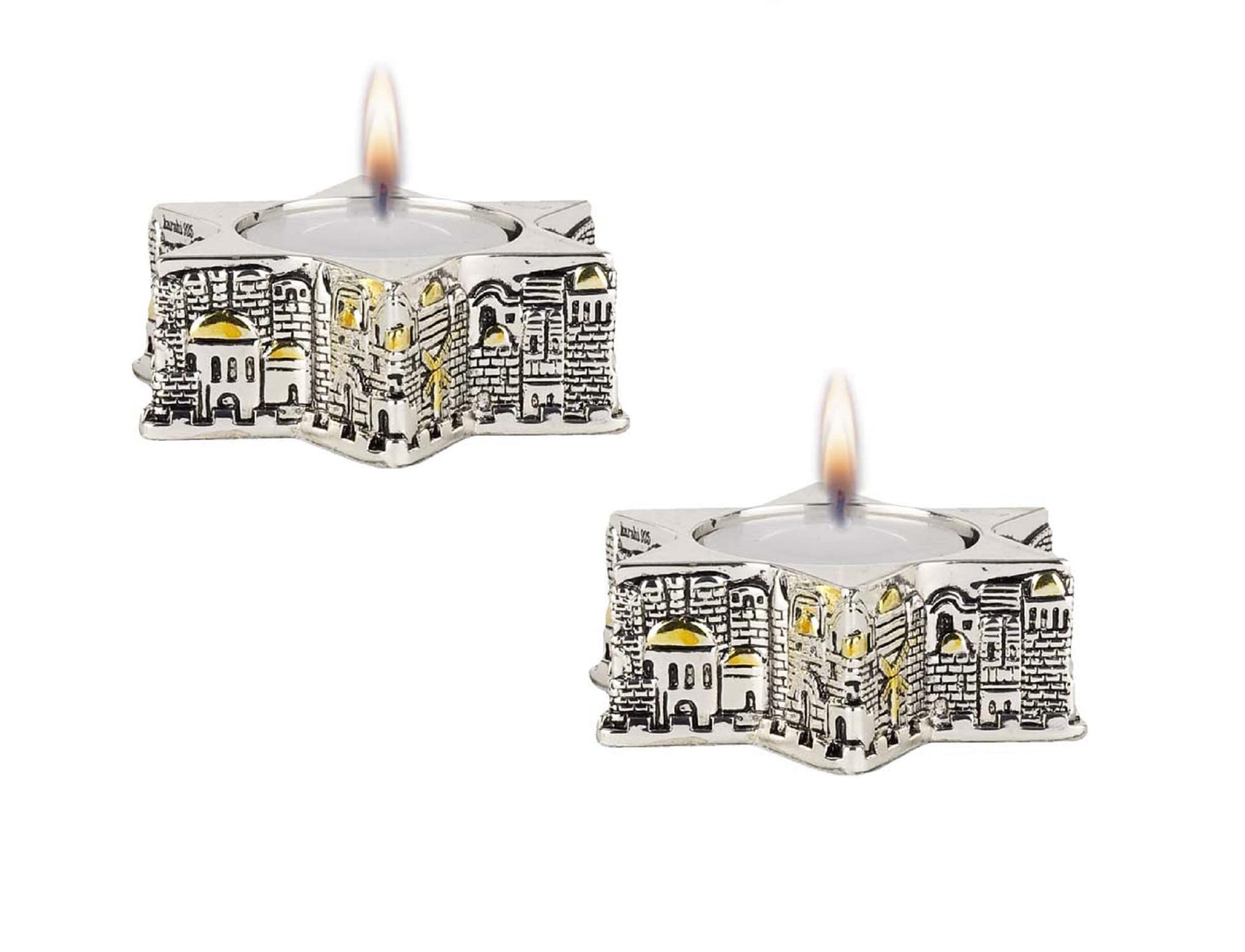 Shabbat Candle Holders Pair Of 2 Candle Sticks Silver Plated Jerusalem Design
