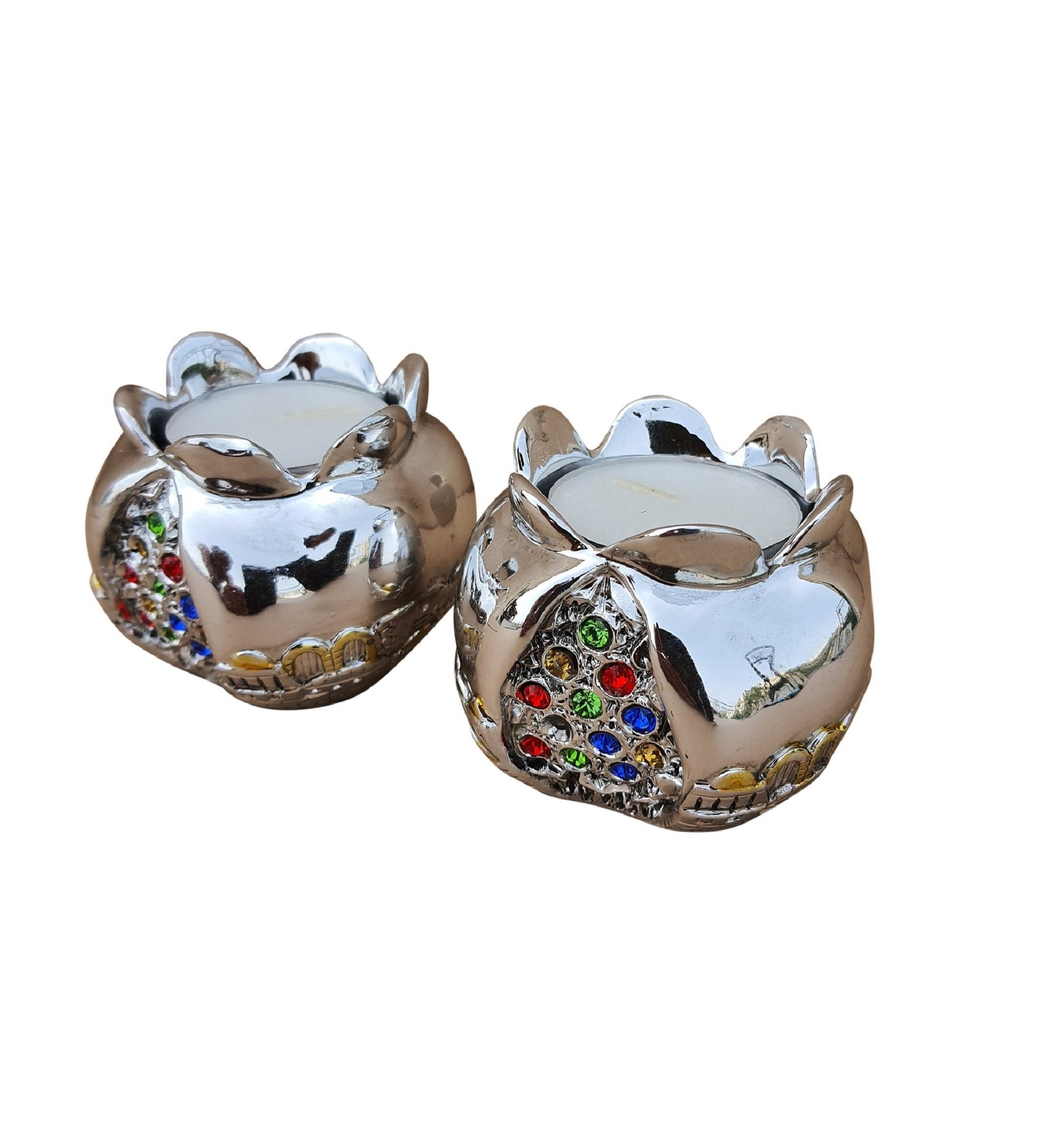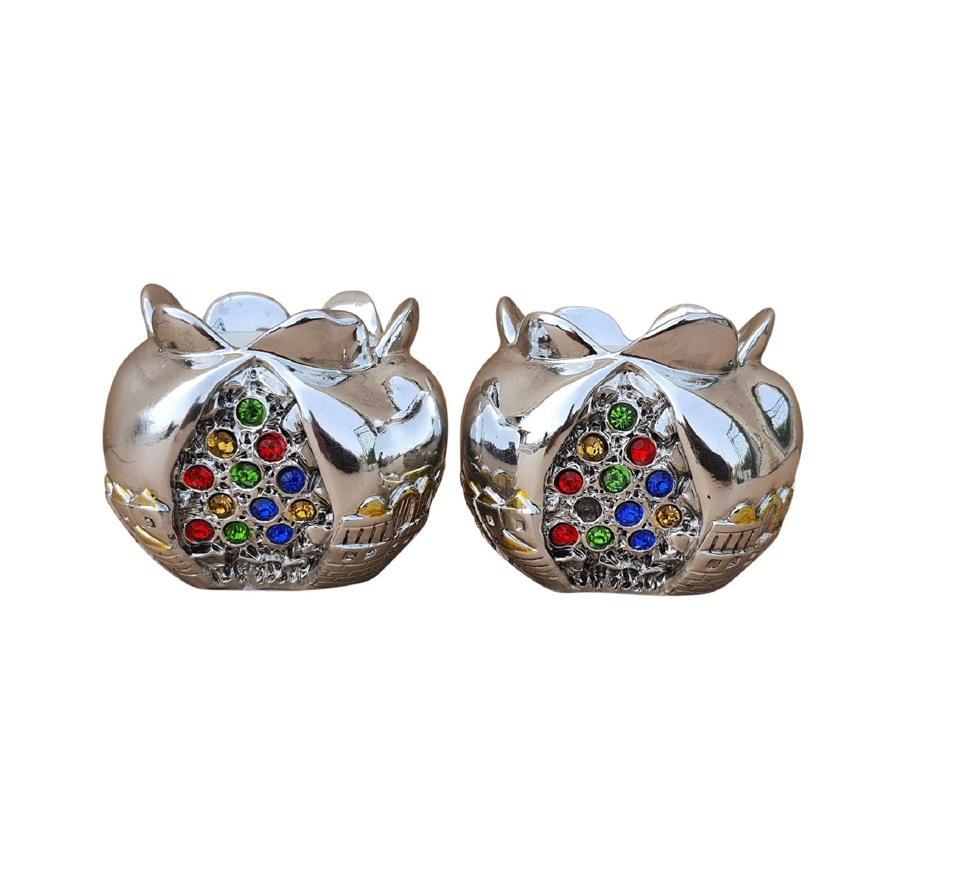 Shabbat Candle Holders Pair Of 2 Candle Sticks Silver Plated With 12 Choshen Stones
